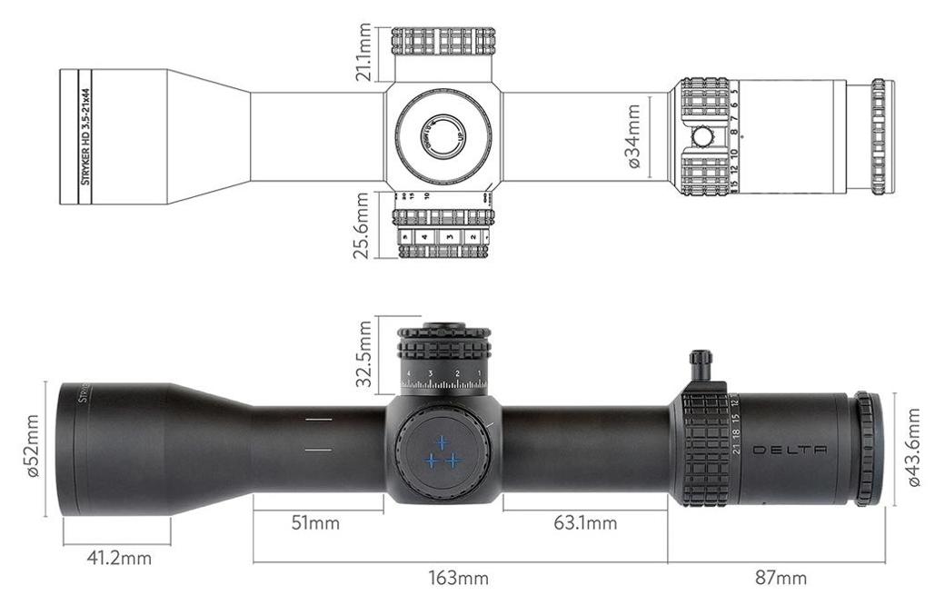 Delta Stryker HD 3,5-21x44 wyróżnia się również dużym zakresem regulacji elewacji wynoszącym 45 MRAD. To szczególnie przydatne w przypadku dużego opadu pocisku, jak w przypadku strzelania z kalibru .22 LR. Ta luneta pozwoli Ci precyzyjnie dostosować celowanie do różnych odległości i warunków strzeleckich.