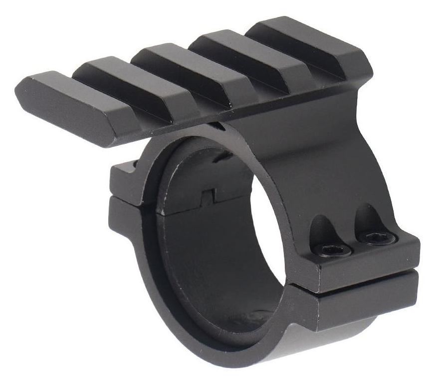 Szyna montażowa Picatinny z obejmą na lunetę od firmy Vector Optics, wykonana w całości z aluminium. Pozwala na doposażenie lunety w dodatkowy kolimator, latarkę, celownik laserowy lub inne akcesoria. Przeznaczona do użytku na broni palnej, charakteryzuje się solidną, lekką konstrukcją oraz łatwym montażem. Szyna w standardzie Picatinny wyposażona jest w cztery śruby mocujące typu torx, które zapewniają pewne i stabilne zamocowanie.