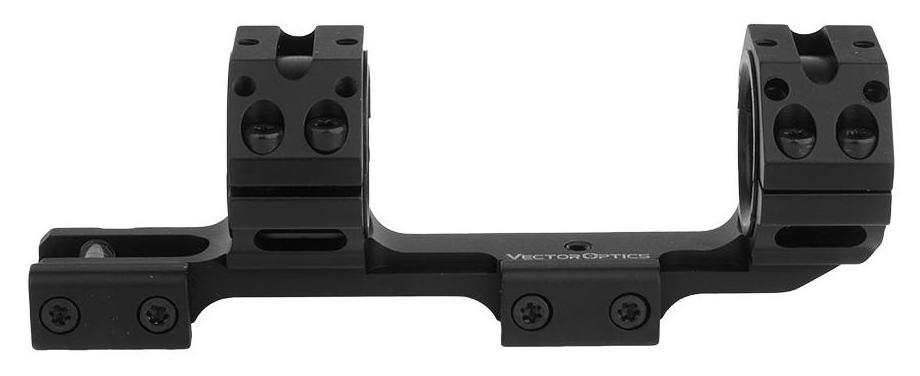 Jednoczęściowy montaż Vector Optics (SKU: SCACD-16 / 35144) przeznaczony do lunet celowniczych o tubusie 30 mm (lub 25,4 mm z adapterem), zaprojektowany z myślą o montażu na szynach dovetail 11 mm. Konstrukcja z aluminium 6063-T6 łączy niską masę z dużą wytrzymałością, a matowa anodyzacja chroni przed korozją i uszkodzeniami mechanicznymi. Cztery śruby na każdej obejmie zapewniają równomierny docisk lunety i stabilność podczas strzału nawet z broni o dużym odrzucie.