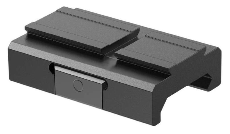 The Vector Optics VOD Picatinny/Weaver Low-Rise Mount (SKU: SCFRM-14/43372) is designed for VOD and VOD-R footprint-compatible red dot sights. It allows optics to be mounted directly to a Picatinny or Weaver rail, minimizing mount height and facilitating a low sightline. Two Torx screws are used for attachment, ensuring a solid, vibration-resistant connection. The construction is precision-milled from 6061 T6 aluminum, ensuring high durability and low weight. The mount is compatible with the Frenzy Plus SCRD-63 , SCRD-SM63 , and other VOD-equipped red dot sights. • very low mount for sights with VOD / VOD-R footprint • compatible with Picatinny and Weaver rails • made of milled 6061 T6 aluminum • assembly using two Torx screws • minimum elevation of the sights (6 mm) • compatibility: VOD / VOD-R • mounting: Picatinny / Weaver • sight elevation: 6 mm • total height: 13 mm • total length: 46 mm • total width: 36 mm • weight: 36 g • color: black