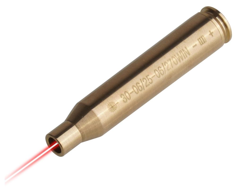 Nabój laserowy w kalibrze .30-06 od firmy Vector Optics umożliwia szybkie i precyzyjne ustawienie celownika optycznego lub kolimatora bez konieczności oddawania strzałów. Emituje czerwoną wiązkę lasera po załadowaniu do komory nabojowej, wskazując dokładny punkt celowania. Dzięki temu użytkownik może wstępnie skalibrować przyrządy celownicze i zminimalizować zużycie amunicji. Nabój wykonano z trwałego mosiądzu, a jego kryza jest odkręcana, co umożliwia łatwe umieszczenie baterii. Producent zaleca oddanie kontrolnego strzału, szczególnie przy kalibracji na średnim i dużym dystansie, by uwzględnić balistykę pocisku.