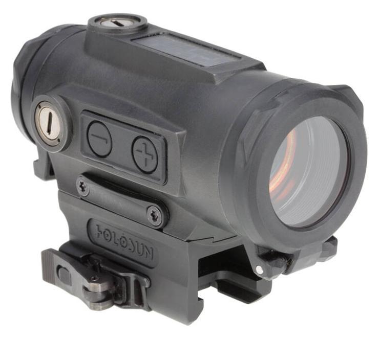 System Multi-Reticle (MRS) umożliwia wybór jednego z trzech znaków celowniczych: kropki 2 MOA, okręgu 65 MOA lub kombinacji kropki i okręgu. Czerwona dioda Super LED oferuje 10 poziomów jasności (8 dziennych i 2 do noktowizji). Funkcja Shake Awake oszczędza energię poprzez automatyczne przejście w tryb uśpienia i natychmiastowe wybudzenie przy wykryciu ruchu. Bateria CR2032 umieszczona jest na bocznej tacce, co zapewnia szybki i wygodny dostęp.