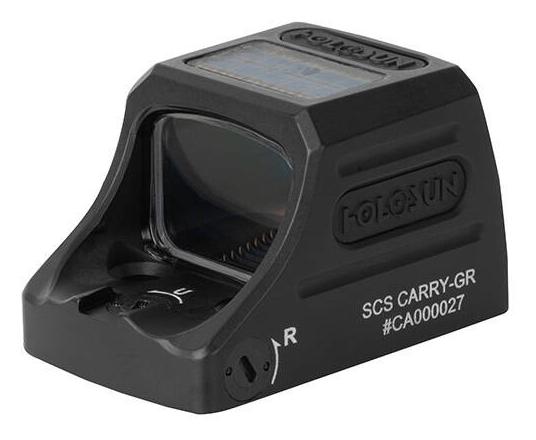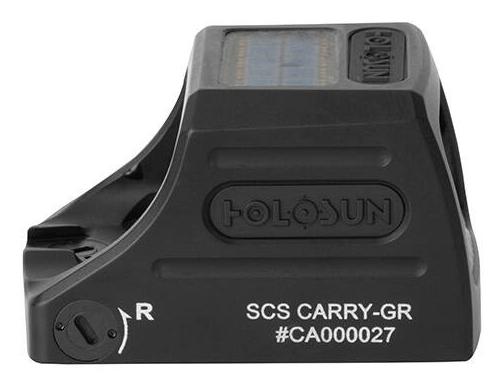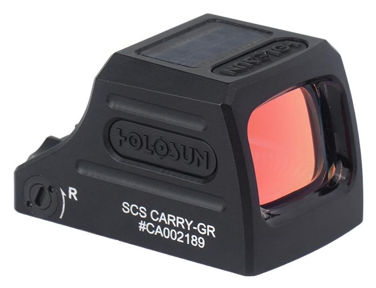 Compact closed collimator characterized by compact and low. The sight has 3 modes - dot, circle or a combination of both. Power is provided by a hybrid system, combining a built-in battery with a solar cell. The sight housing is made of milled 7075 T6 aluminum. The device is operated by a button located on the left side of the sight. The aiming point can be adjusted vertically and horizontally and is parallax-free. The body of the scope has a tightness class of IP67, which is due to the materials used and the appropriate sealing. This provides it with resistance to weather conditions, dirt and dust. It is adapted for mounting on a Holosun K series plate. Additionally, the set includes an RMSc mounting plate. The size of the lens allows for comfortable observation with both eyes open. Compact dimensions will not interfere with simultaneous use of mechanical sights. The Carry closed collimator is a sensible choice in the category of solid, small sights with great possibilities. It will prove useful in sports use in the category of dynamic shooting, where quick drawing of the weapon and aiming it at the target is important, but also in professional and recreational use. The lens in my collimator is tilted, is it supposed to be that way? Yes, in the case of closed collimators, where the emitter is placed at 6 o'clock, the lens must be tilted to properly reflect light towards the user's eyes. • compact closed collimator with a compact design, • small size combined with great possibilities, • high durability and resistance to weather conditions, • the body is made of 7075 T6 aluminum, • thanks to the seals used, it meets the IP67 requirements, • fits Holosun K series mounting, • included with RMSc adapter, • MRS system - Multi Reticle System, • 2 MOA dot, 32 MOA circle or a combination of both, • hybrid power system - built-in battery and solar panel, • no parallax, • vertical and horizontal adjustment, • adjustment with a characteristic click using the included key, • Super LED diode.