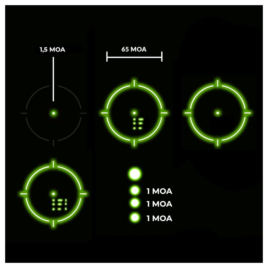 • siatka Holosun SPR: kropka 1,5 MOA i okrąg 65 MOA
