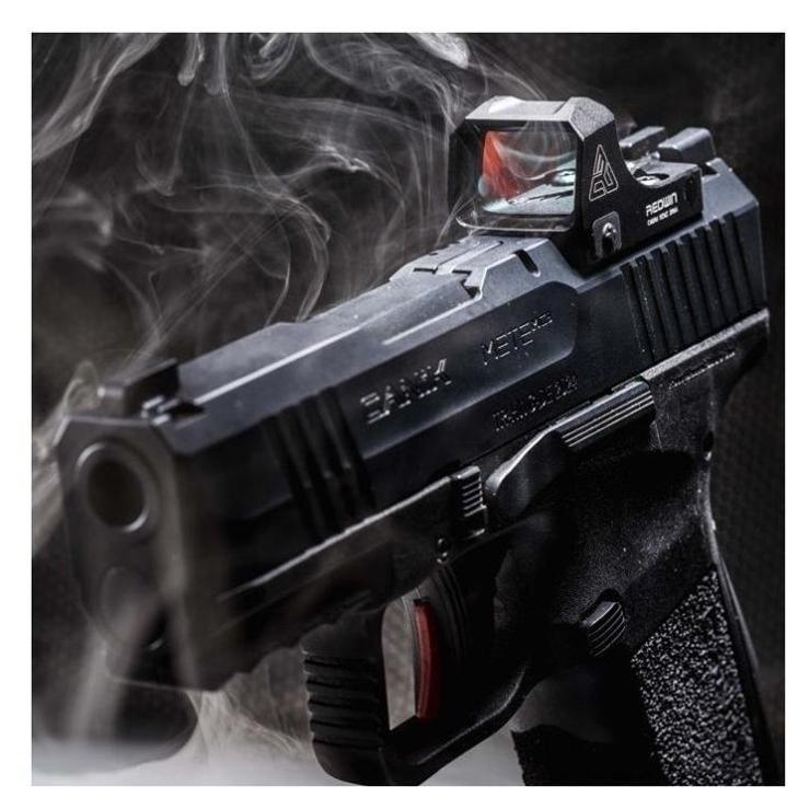 Kolimator Redwin Cobra Mini 21×15 został zaprojektowany z myślą o montażu na szynie RMSc, idealnie nadając się do mniejszych pistoletów, takich jak Canik METE i inne kompakty kalibru 9 mm.