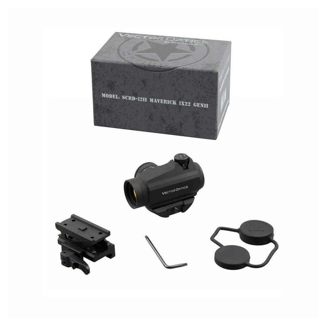 Kolimator Maverick 1x22 Gen. II to lekki i kompaktowy celownik punktowy z czerwonym punktem celowniczym o wielkości 3 MOA, przeznaczony do szerokiego zakresu zastosowań – od strzelectwa sportowego i myślistwa po użytkowanie taktyczne. W zestawie znajdują się dwa montaże: niski oraz QD (Quick Detach), co pozwala łatwo dopasować celownik do konkretnego rodzaju broni. Regulacja jasności odbywa się za pomocą dużego pokrętła z boku obudowy, co zapewnia wygodną obsługę również w rękawicach. Użytkownik ma do dyspozycji 11 poziomów jasności – 10 przystosowanych do światła dziennego oraz 1 do pracy z noktowizorem. Zasilanie stanowi bateria CR2032, zapewniająca do 500 godzin pracy. Obudowa z aluminium 6061 zapewnia odporność na zaparowanie oraz wytrzymałość w trudnych warunkach. Produkt objęty jest 5-letnią gwarancją producenta.