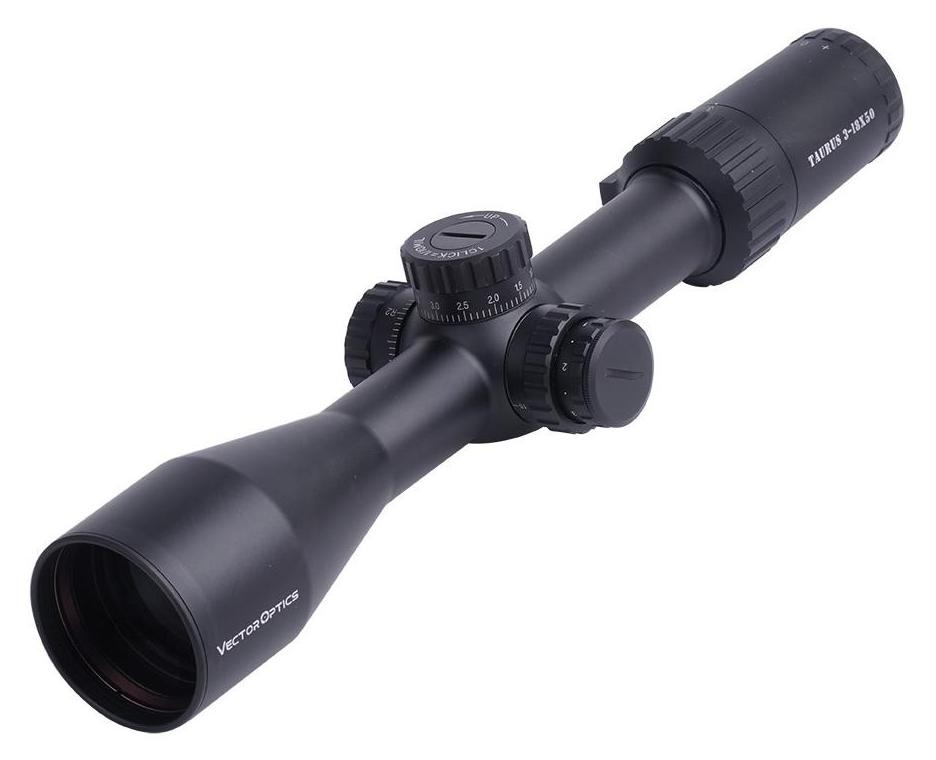 The Vector Optics Taurus 3–18x50 Riflescope (SKU: SCFF-11 / 33509) is a FFP-class optical sight designed for precision shooting by hunters and target shooters. Equipped with an illuminated MPX1 reticle in the first focal plane (FFP), it offers a proportional reticle scale throughout the entire magnification range. Thanks to its FMC multi-coating and 6061 T6 aluminum housing, the scope provides high image quality and shock resistance. Adjustment is performed using open barrels with 1/10-mil clicks. The interior is nitrogen-filled to prevent internal fogging. The manufacturer offers a lifetime T-VIP warranty. • MPX1 ballistic cross in the foreground (FFP) • 6 levels of red dot illumination • open ballistic turrets (click 1/10 MIL) • very low dispersion and clear image • multi-layer FMC coatings • nitrogen filling – resistance to evaporation • shock resistance up to 1000 G • 6061 T6 aluminum housing • T-VIP lifetime warranty • Taurus 3–18x50 FFP telescope • 30 mm Picatinny mounting rings • spare top/bottom turrets • adjustment key • lens cover • honeycomb sun visor • cleaning cloth • series: Taurus • mesh type: MPX1 • grid plan: first (FFP) • magnification: 3–18× • lens diameter: 50 mm • tube: 30 mm (one-piece) • adjustment click: 1/10 MIL • adjustment range: 60 MOA (vertical/horizontal) • Exit pupil: 16.6–2.7 mm • distance from the eye: 100 mm • parallax adjustment: 13.7 m – ∞ • backlight: red dot (6 levels) • length: 335 mm • weight: 801 g (without assembly) • shock resistance: 1000 G • waterproof: yes • filling: nitrogen