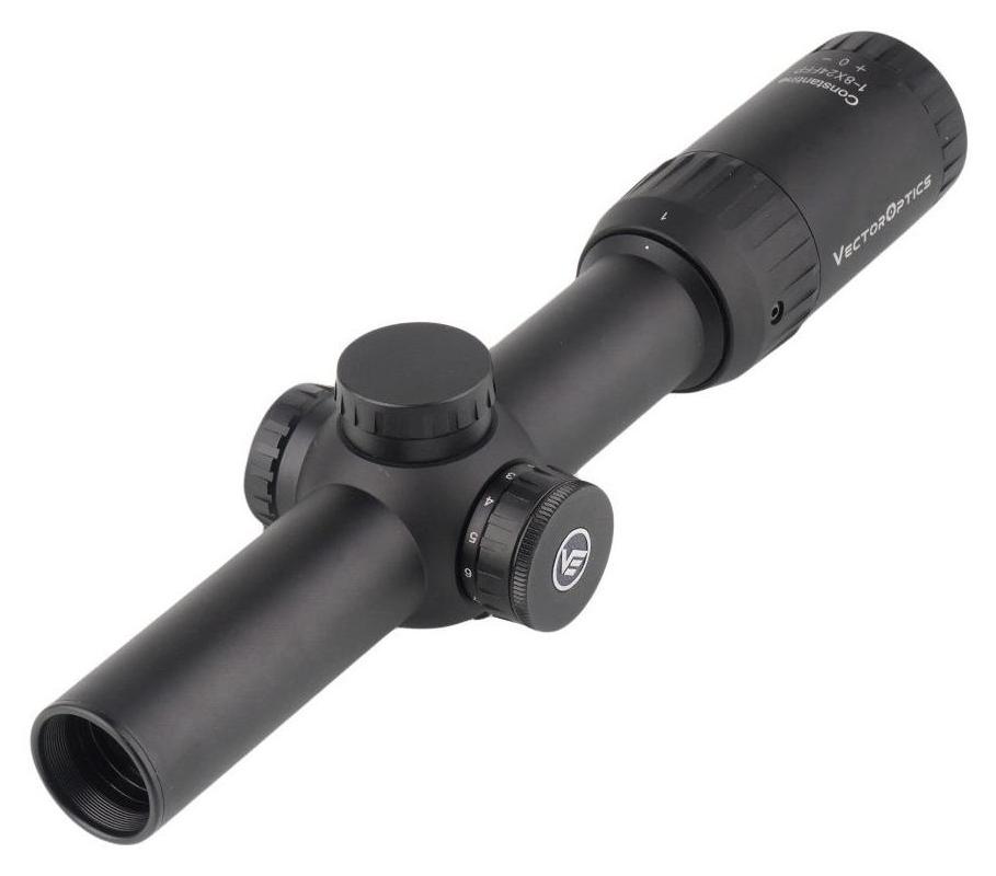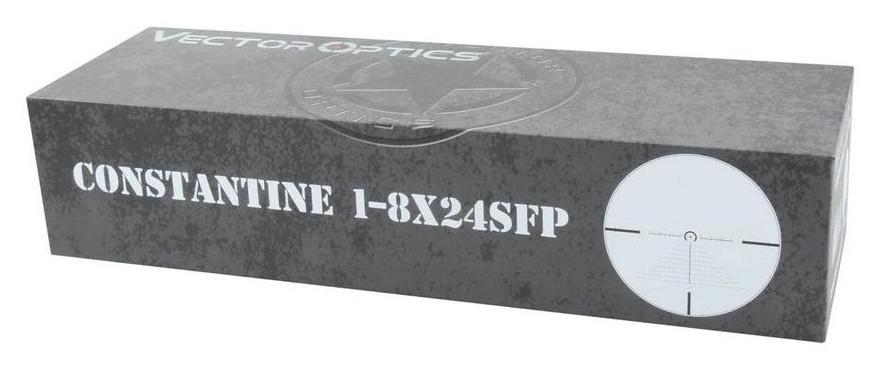Luneta celownicza Constantine 1–8x24 od Vector Optics to zaawansowany model biegowy zaprojektowany z myślą o strzelcach dynamicznych. Zakres powiększenia 1–8x zapewnia elastyczność w celowaniu — niskie przybliżenie umożliwia szybkie celowanie obuoczne na krótkim dystansie, natomiast wyższe ułatwia precyzyjne strzelanie na dystansach średnich. Zastosowana siatka celownicza VOF-EHT znajduje się na pierwszym planie (FFP), dzięki czemu jej rozmiar zmienia się proporcjonalnie do przybliżenia, co pozwala lepiej ocenić odległość i kompensację. Luneta wyposażona jest w czerwone podświetlenie siatki o 11 poziomach jasności, zasilane baterią CR2032. Korpus wykonano z trwałego aluminium lotniczego 6061 T6, gwarantując wysoką odporność mechaniczną i wodoodporność. Wypełnienie azotem zapobiega parowaniu soczewek wewnętrznych, zapewniając wyraźny obraz niezależnie od warunków atmosferycznych.