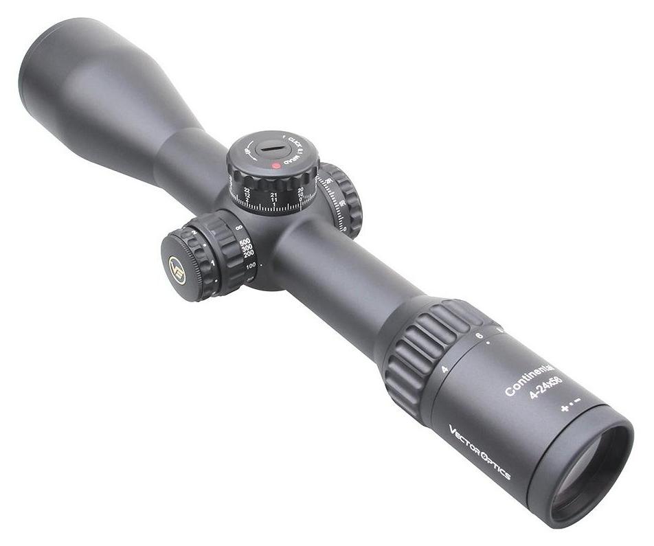 Vector Optics Continental x6 4-24 FFP to luneta celownicza przeznaczona do strzelania na średnim dystansie. Dysponuje zmiennym powiększeniem w zakresie 4-24x i obiektywem 56 mm. Producent wyposażył ją w podświetlany znak celowniczy typu VEC-MBR osadzonego na pierwszym planie (FFP). Układ soczewek FMC Diamond Clear VePRO Disperse zapewnia jasny i ostry obraz. Celownik wykonany jest z wytrzymałego aluminium lotniczego a konstrukcja lunety została wypełniona azotem dzięki czemu jej soczewki odporne są na wewnętrzne parowanie. Wygodna w obsłudze nawet w rękawicach taktycznych i przeznaczona do montażu na szynie Picatinny. Całość spełnia normy standardu IP67, a za zasilanie odpowiada bateria CR2032.