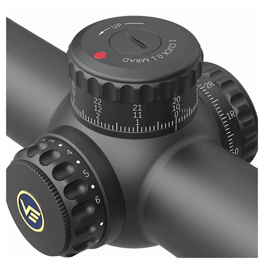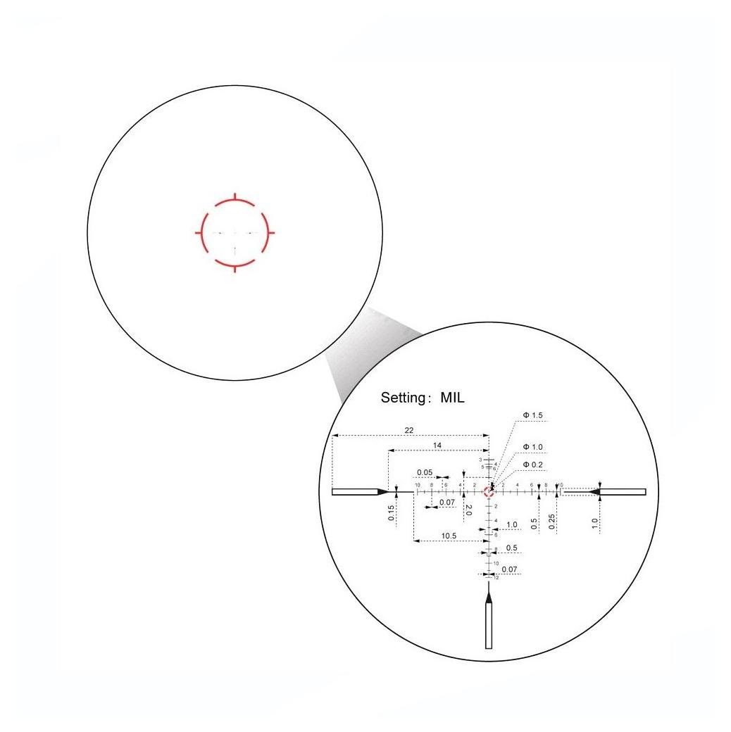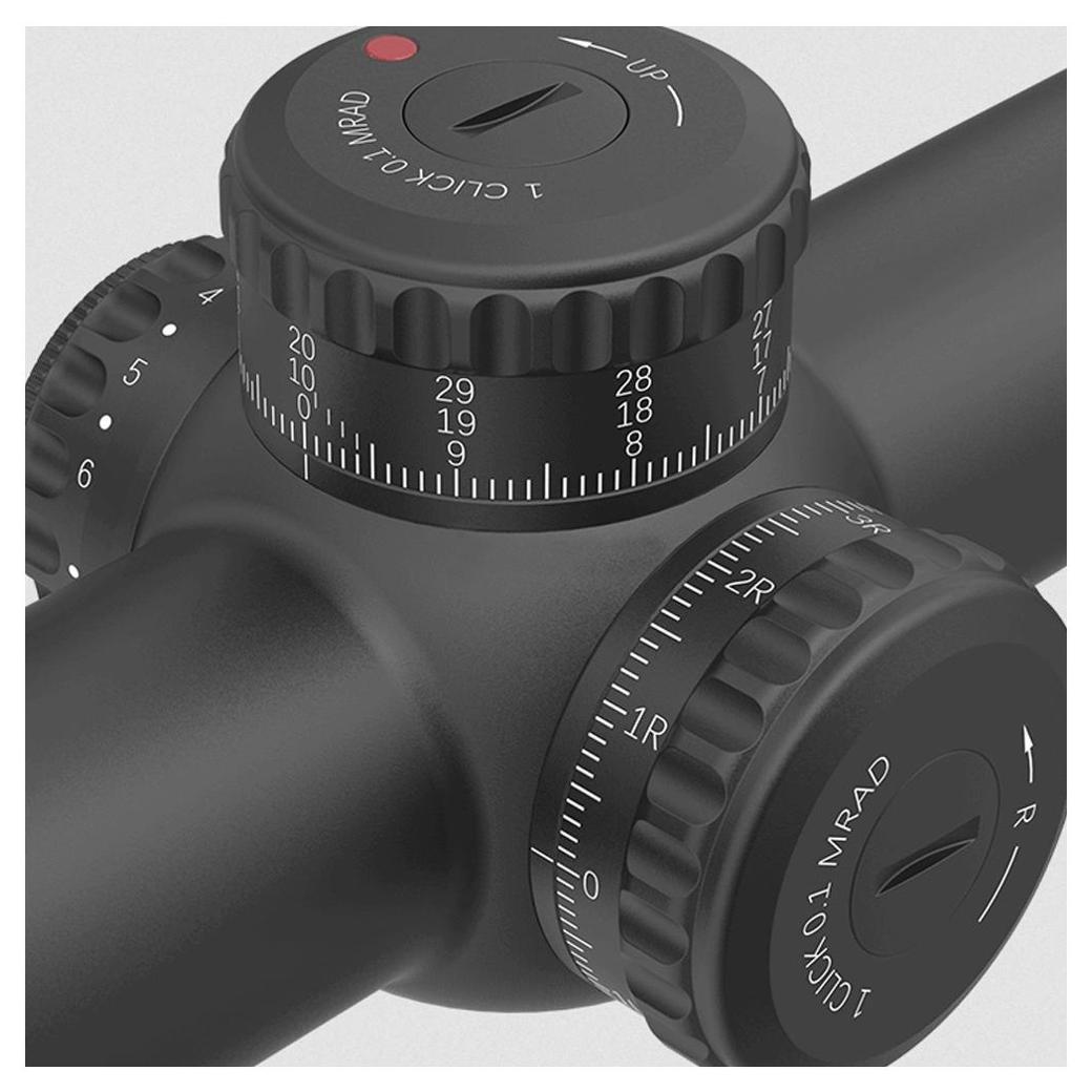 Siatka celownicza VET-RAR umieszczona w pierwszym planie (FFP) jest trawiona w szkle i wyposażona w podświetlaną kropkę. Obudowę wykonano z aluminium lotniczego 6061 T6, a wnętrze wypełniono azotem, co zapewnia odporność na zaparowanie i uszczelnienie na poziomie IP68. Luneta wytrzymuje wstrząsy do 1000G, co czyni ją odporną na intensywne użytkowanie w wymagającym terenie.