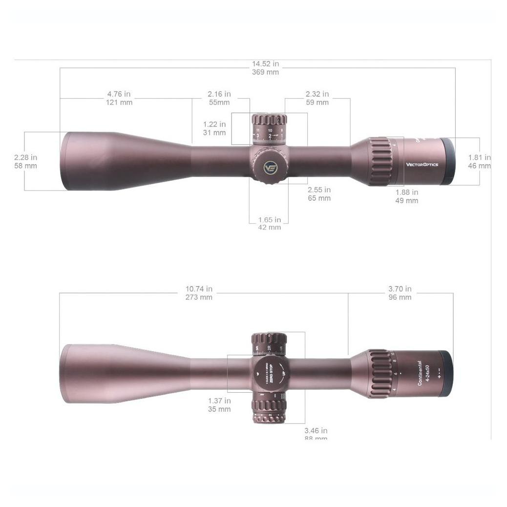 Vector Optics Continental x6 4-24x50 jest zaawansowanym celownikiem optycznym dla wymagających strzelców i myśliwych. Luneta zapewnia wysoką precyzję oraz szeroki zakres powiększenia od 4x do 24x, co umożliwia skuteczne strzelanie na różne dystanse. Obudowa została wykonana z trwałego i lekkiego stopu aluminium lotniczego. Zgodna z montażem w standardzie Picatiiny i zasilana baterią CR2032. Soczewki lunety pokryte zostały powłoką antyrefleksyjną FMC, zwiększającą jasność i klarowność obrazu. Dzięki obiektywowi o średnicy 50 mm celownik dostarcza jasny i wyraźny obraz nawet w trudnych warunkach oświetleniowych. Wyposażona w siatkę celowniczą VCT-20A osadzoną na drugim planie SFP.