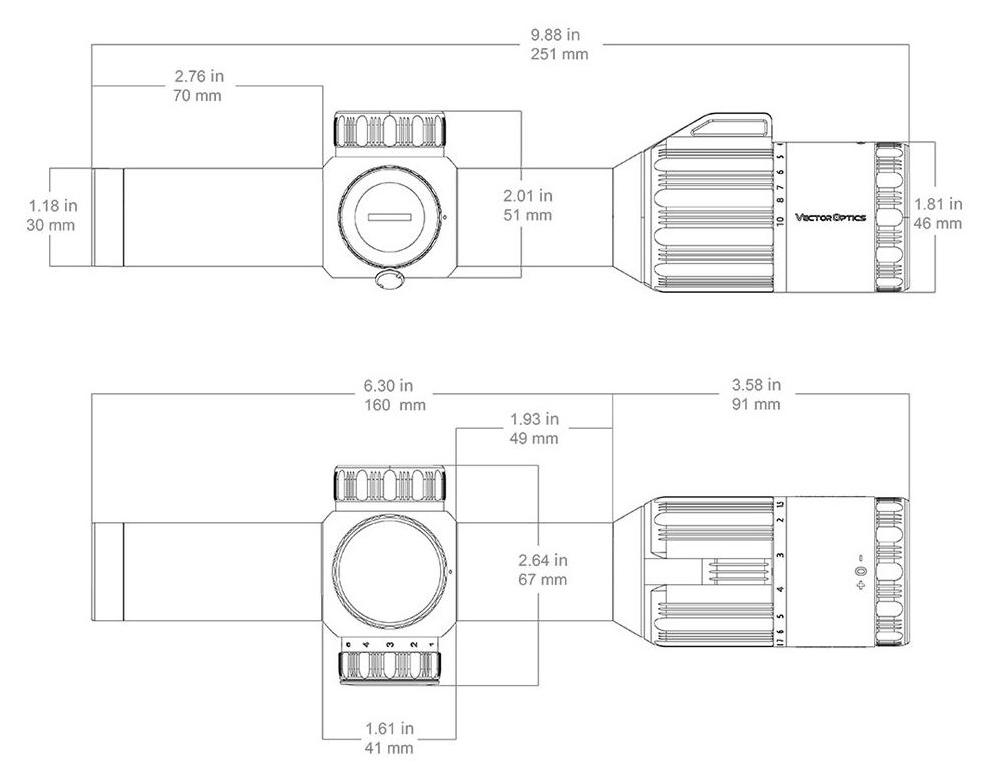 Okular z korekcją dioptrii w zakresie od -2,5 do +2,5 pozwala dopasować ostrość do indywidualnych potrzeb. Tubus o średnicy 30 mm wykonano z aluminium 6061 T-6, co zapewnia wytrzymałość i kompatybilność z wieloma standardowymi montażami. Luneta jest odporna na wstrząsy do 1000 G oraz posiada klasę szczelności IP56, chroniącą przed kurzem i wodą.