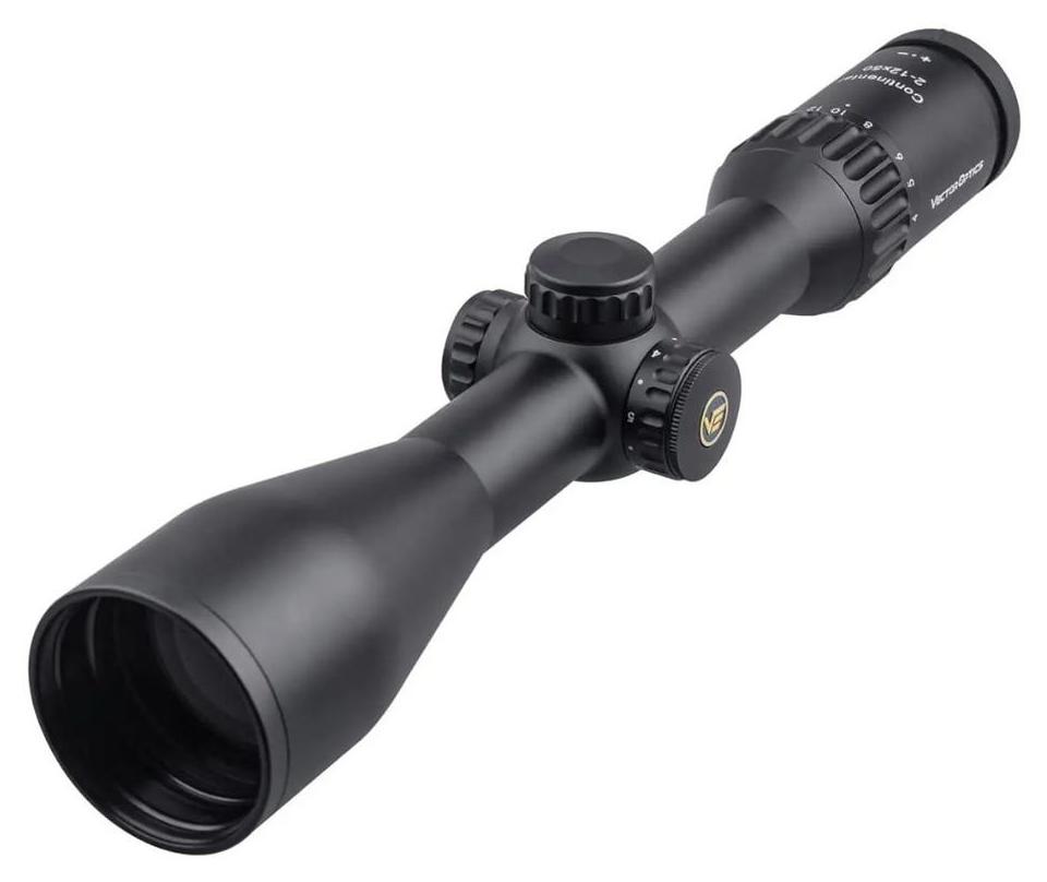 Vector Optics Continental 2‑12x50 SFP to luneta celownicza wyposażona w siatkę VET‑10 BDC w drugiej płaszczyźnie ogniskowej. Dzięki tej konstrukcji siatka zachowuje stałe rozmiary niezależnie od powiększenia. Obiektyw o średnicy 50 mm oraz soczewki z wielowarstwowymi powłokami typu Fully Multi-Coated zapewniają wysoką transmisję światła. Stała paralaksa ustawiona na 91 m upraszcza obsługę w dynamicznych warunkach. Regulacja odbywa się za pomocą wieżyczek z wartością kliku 1/4 MOA i zakresem +/-140 MOA w obu osiach. Siatka celownicza jest podświetlana na 6 poziomach jasności. Konstrukcja lunety, wykonana z aluminium 6061‑T6, jest wypełniona azotem, odporna na parowanie, spełnia normę IP67 i wytrzymuje wstrząsy do 750 G. Korekcja dioptrii mieści się w zakresie od –3 do +2. W zestawie znajduje się również pokrowiec ułatwiający transport lunety.