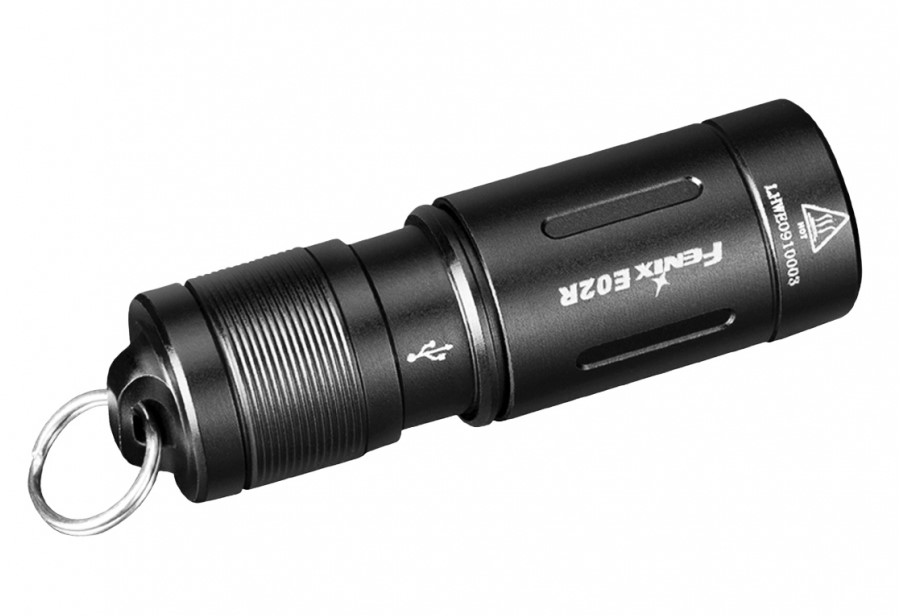 Fenix E02R to kieszonkowa latarka EDC w formie breloka, która emituje strumień 200 lumenów o zasięgu do 49 m, wyposażona w zintegrowany akumulator oraz port ładowania micro-USB.