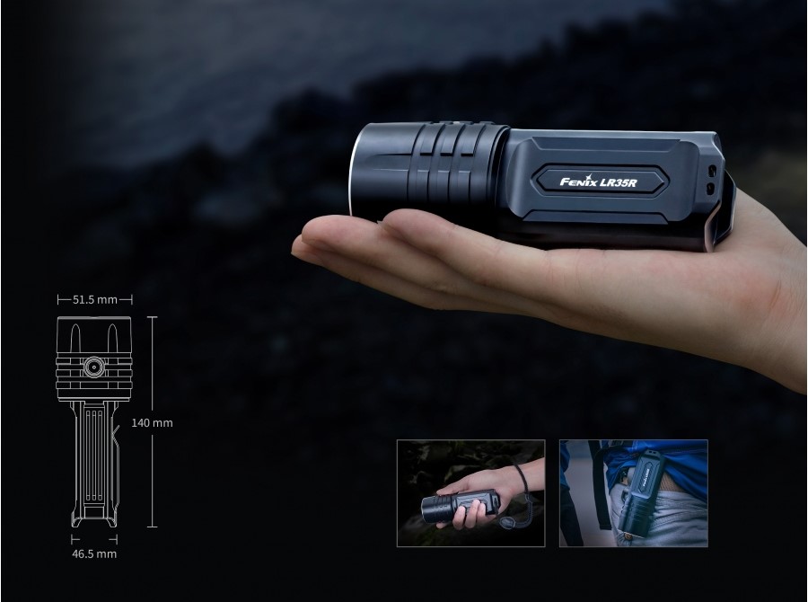 Fenix LR35R to jeden z najpotężniejszych modeli latarek Fenix, emitujący strumień świetlny o natężeniu 10000 lumenów, pozwalający oświetlić dystans 500 metrów. Parametry te klasyfikują ten produkt jako profesjonalne narzędzie przeznaczone między innymi dla ratowników, służb mundurowych oraz poszukiwawczych czy też eksploratorów jaskiń.