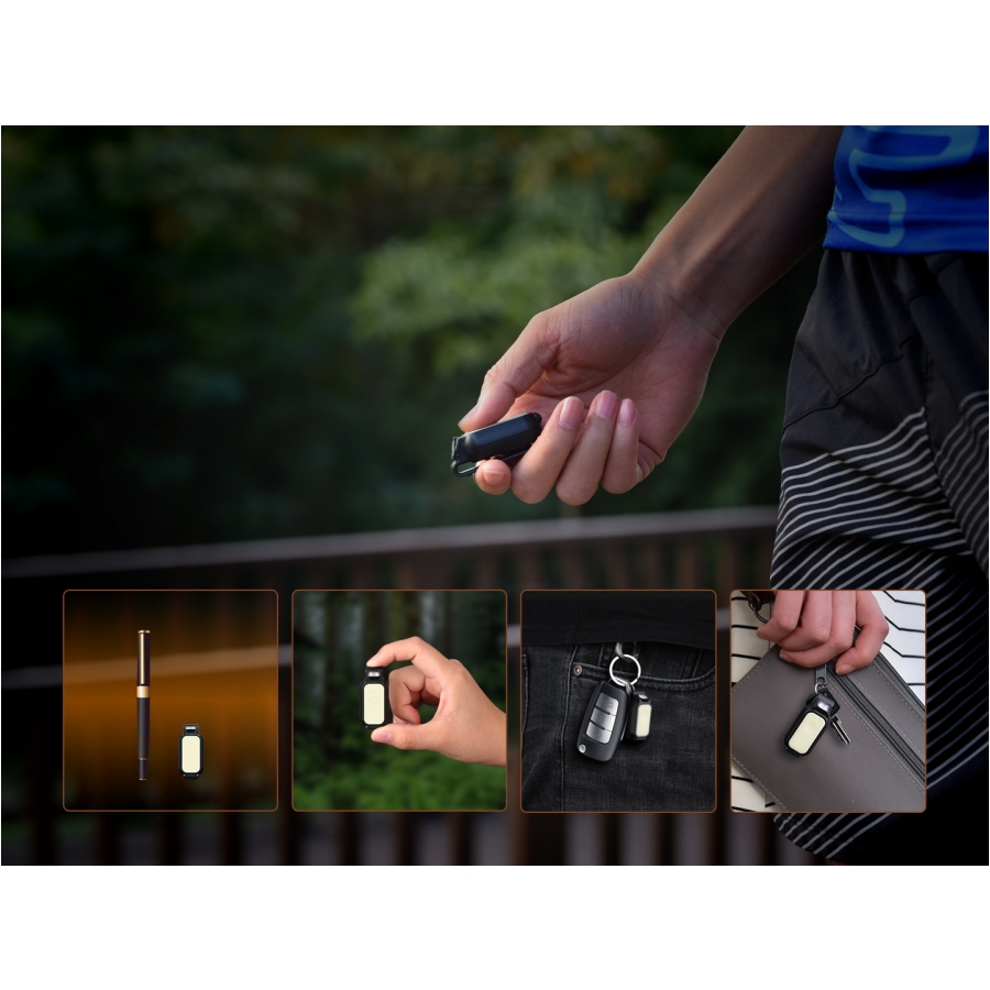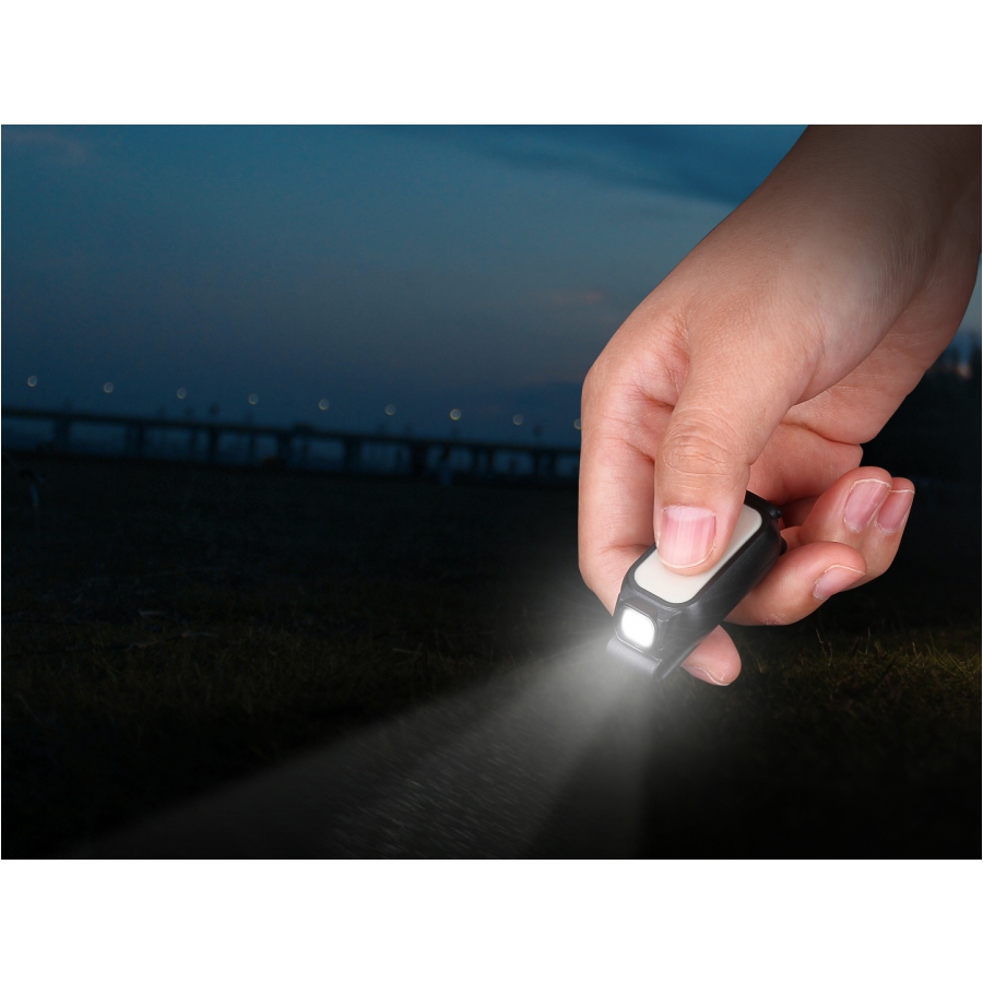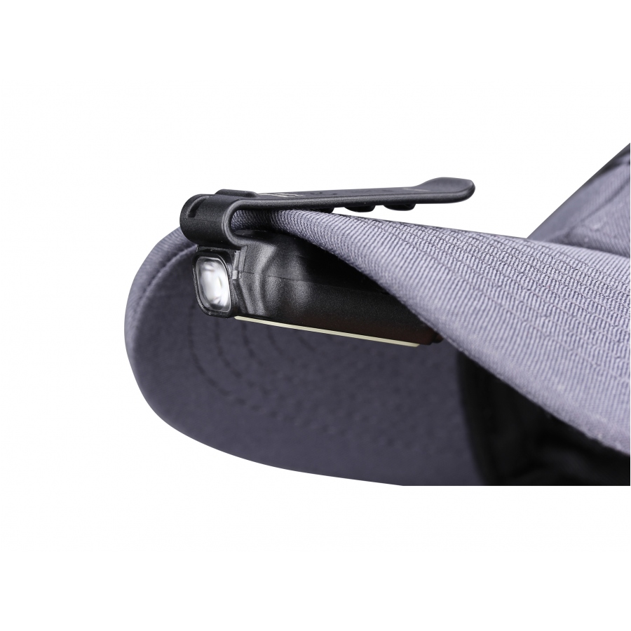 The flashlight uses 3 white light modes: high 150 lumens, medium 45 lumens and low 5 lumens, changed with one button. To increase the functionality of the flashlight, the E-LITE uses two LEDs: blue and red, hidden under the switch. Each of the color emitters has a steady and flashing light mode, thanks to which the pocket flashlight can also be used as a warning light, for night map reading or an emergency signaling. The body made of PC material has the IP66 protection class, which means that the device is resistant to rain and falls from a height of 1 m.