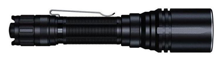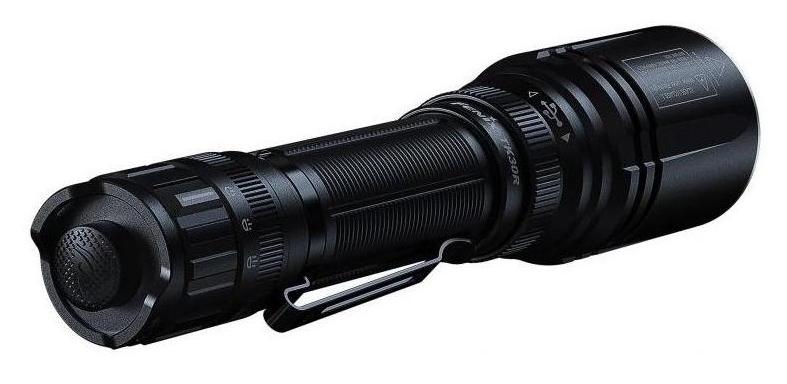 Fenix TK30R to taktyczna latarka typu LEP (Laser Excited Phosphor), generująca bardzo skoncentrowaną wiązkę białego światła o zasięgu do 1500 m. Źródło światła stanowi emiter laserowy, którego strumień po przejściu przez luminofor i układ optyczny przekształcany jest w światło białe o wysokiej kolimacji. Latarka oferuje dwa poziomy jasności oraz tryb strobo, zasilana jest akumulatorem 21700 o pojemności 6000 mAh, a ładowanie odbywa się przez port USB-C umieszczony pod ochronnym pierścieniem. Konstrukcja z aluminium A6061-T6 oraz klasa ochrony IP68 zapewniają odporność na warunki terenowe.