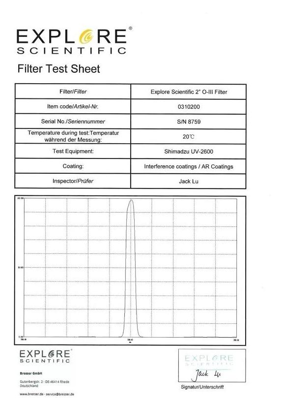 Filtr mgławicowy 2” O-III, Explore Scientific: