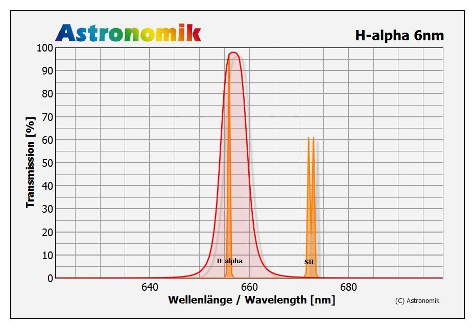 • powłoka Astronomik MFR zapewniająca bardzo wysoką blokadę poza pasmem (UV–IR), wysoki kontrast i brak halo
