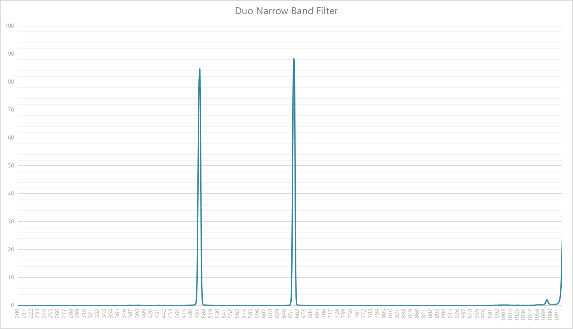 Filtr ten charakteryzuje się transmisją na poziomie 88% dla linii liniach widmowych emitowanych przez zjonizowane atomy wodoru (Hα) oraz tlenu (OIII). W połączeniu z wydajnym wycięciem linii widmowych charakterystycznych dla lamp sodowych i rtęciowych, pozwala to na zarejestrowanie ostrych i kontrastowych obrazów nawet, w pobliżu dużych miast lub podczas jasnych, księżycowych nocy. Filtr charakteryzuje się bardzo małą szerokością połówkową pasm przepuszczania, wynoszącą jedynie 3 nm, dzięki czemu umożliwia on uzyskanie znacznie lepszego kontrastu i o wiele ciemniejszego tła niż w przypadku filtrów dwupasmowych o szerszym oknie transmisji.