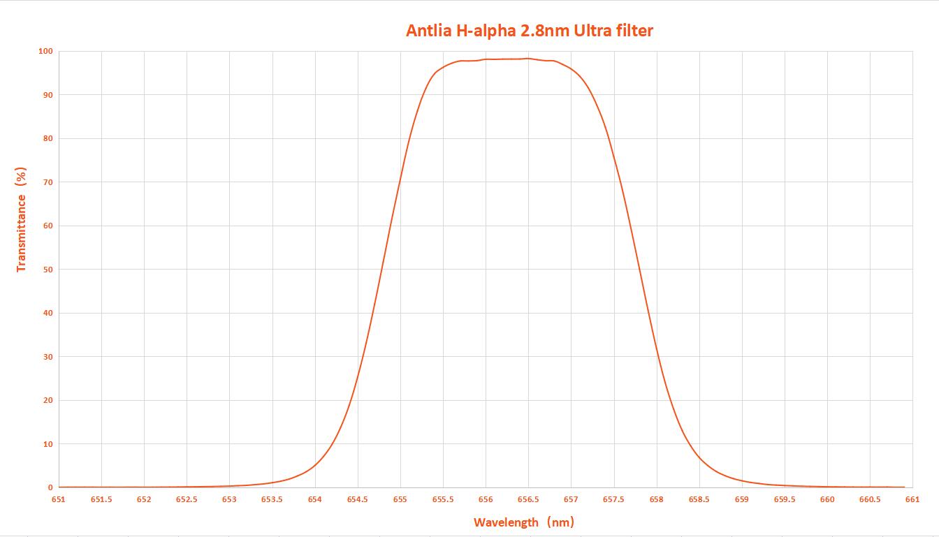 Dzięki bardzo wąskiej szerokości połówkowej pasma wynoszącej 2,8 nm filtr ten łączy w sobie zdolność do niemal całkowitego wyeliminowania niepożądanej składowej pochodzącej od lamp sodowych i rtęciowych z wysoką transmisyjnością dla linii widmowej Hα, jednej z najważniejszych z punktu widzenia astrofotografii. Dla zapewnienia wysokiego kontrastu filtry pokryte zostały zaawansowanymi technologicznie powłokami, a ich brzegi zostały zaciemnione. Wszystkie te cechy sprawiają, że filtr ten oferuje o niemal 30 procent lepszy sygnał niż w przypadku analogicznych modeli z serii Antlia Pro.