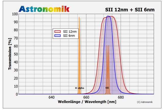 Wąska szerokość pasma 6 nm pozwala skutecznie odfiltrować niepożądane światło o innych długościach fal – od ultrafioletu aż po podczerwień. Filtr jest szczególnie polecany do fotografowania słabych obiektów w gęstych obszarach Drogi Mlecznej oraz w miejscach o bardzo dużym zanieczyszczeniu świetlnym.