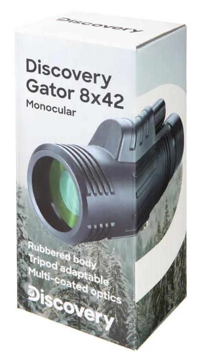 Levenhuk Discovery Gator 8x42 is an 8x optical magnification monocular with a 42mm objective lens. The instrument uses a prism made of BK-7 glass, which, due to its high Abbe number, keeps chromatic aberrations to a minimum, and therefore ensures faithful color rendering in the field of view. The lenses of the monocular are additionally covered with full multi-layer coating (FMC), which significantly improves image contrast.