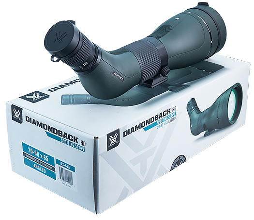 Luneta Diamondback HD 20-60x85 to jeden z najnowszych modeli w znajdujących się w ofercie amerykańskiej firmy Vortex. Jest to idealny instrument optyczny ne tylko dla myśliwych czy osób uprawiających strzelectwo sportowe, ale także dla każdego, kto ceni sobie solidne wykonanie i doskonałą jakość obrazu. Dzięki okularowi ustawionemu pod kątem 45° sprzęt ten cechuje się znakomitą ergonomią, ułatwiającą obserwację obiektów znajdujących się wysoko nad horyzontem, na przykład samolotów czy niektórych, jasnych obiektów astronomicznych.