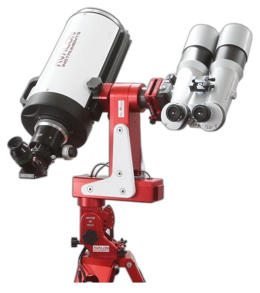 Specjalna konstrukcja pojedynczego ramienia pozwala na śledzenie obiektu przez całą noc, bez konieczności wykonywania operacji Meridian Flip. Dzięki unikalnemu systemowi napędu pasowego mocowania Avalon są pozbawione luzów. Technologia ta pozwala na szybką reakcję na impulsy świetlne, co jest kluczowym aspektem wymaganym do uzyskania wysokiej wydajności podczas prowadzenia, eliminując nagłe skoki napięcia, które mogą mieć wpływ na końcowy efekt astrofotografii. Najwyższa jakość wykonania, innowacyjny system napędu pasowego z zerowym luzem oraz nowy system sterowania StarGO GoTo pozwalają na doskonałą wydajność w zastosowaniach fotograficznych, z długimi czasami naświetlania i sterowanymi obrazami (zobacz naszą sugerowaną tabelę parametrów pilota PHD2), nawet w przypadku korzystania z teleskopów o bardzo długiej ogniskowej. Zegarek M-zero został wyprodukowany tak, aby zapewnić najlepszą wydajność przy jednoczesnym zachowaniu atrakcyjnego designu Made in Italy. Specjalna konstrukcja Dual Dec pozwala na jednoczesne używanie dwóch teleskopów. Drugi teleskop może być używany do robienia zdjęć lub do prowadzenia, działając jednocześnie jako „przeciwwaga”. Dzięki funkcji Dual Dec i możliwości ustawienia ramienia DEC w kilku różnych pozycjach, konstrukcję można wyważyć bez użycia przeciwwag. System naturalnie dobrze wyważony w ten sposób nie wymaga żadnego wysiłku ze strony mechaniki. Oznacza to, że montaż nie jest przeciążony masą, a w przypadku przypadkowej utraty mocy nie ma ryzyka „upadku teleskopu”. Wykonany w całości z anodowanego aluminium, obrabiany przy użyciu 5-osiowych maszyn CNC. Montaż waży zaledwie 6 kg/13,2 funta, a w połączeniu z nowym statywem T-Pod 90 osiąga całkowitą wagę 12 kg/26,4 funta, co jest doskonałym rozwiązaniem dla podróżujących astronomów. Większa rozdzielczość i precyzja śledzenia dzięki 400-stopniowym silnikom HQ (wysokiej jakości) zamontowanym na obu osiach RA/DEC. Lekki i wytrzymały, M-zero jest świetnym rozwiązaniem dla podróżujących miłośników astronomii. M-zero to więcej niż jeden montaż: standardowy paralaktyczny do użytku z dłuższą optyką, montaż jednoramienny z dużą zaletą braku konieczności obrotu południka przy korzystaniu z kompaktowej optyki, montaż azymutalny do astronomii wizualnej i wreszcie doskonała platforma do zdjęć poklatkowych do fotografii panoramicznej i nagrywania filmów. Dzięki systemowi StarGO GoToControl, teleskopem M-Zero można sterować za pomocą smartfona i tabletu przez Bluetooth lub połączenie Wi-Fi. Można go szybko przełączyć w tryb azymutalny do obserwacji wizualnych przy użyciu większych teleskopów i lornetek lub do wykonywania zdjęć panoramicznych lub sekwencji wideo z funkcją time-lapse. Praktycznie bezobsługowość, trwałe materiały i możliwość łatwej aktualizacji oprogramowania i oprogramowania StarGO sprawiają, że M-zero jest zawsze gotowy do użycia, na czasie, konkurencyjny i niezwykle niezawodny. • Typ: montaż paralaktyczny/alt-az-pojedynczy • Waga: 7,5 kg/16 funtów • Nośność: 13 kg/28,6 funta (przy konfiguracji z dwoma teleskopami) - 8 kg/17,6 funta (przy konfiguracji z jednym teleskopem) • Układ przeniesienia napędu: Wszystkie pasy napędowe oparte na czterostopniowym reduktorze. Wszystkie ruchy są na łożyskach kulkowych. Brak konserwacji i systemu bez luzów. Koła pasowe wykonane ze specjalnego polimeru włókna szklanego ładowanego i wysoce precyzyjnych pasów zębatych. • Materiał konstrukcyjny: anodowane aluminium, obrabiane z pojedynczych bloków na precyzyjnych 5-osiowych maszynach CNC • Polar Finder: model Celestron • System GOTO: StarGO Plus. • Przeciwwaga: 0,5 kg/1,1 funta • Płyta lunety: w stylu Vixen • Gwarancja: 2 lata od daty zakupu, rozszerzona do 5 lat na układ przeniesienia napędu