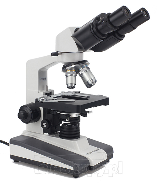 Dwuokularowy, transmisyjny mikroskop o szerokim zakresie powiększeń wyposażony w okulary szerokokątne oraz cztery achromatyczne obiektywy. Trzy okularowa głowica umożliwia jednoczesną obserwację oraz wykonywanie zdjęć, lub po umieszczeniu PC okularu podgląd obrazu oraz jego rejestrację po podłączeniu urządzenia do komputera.