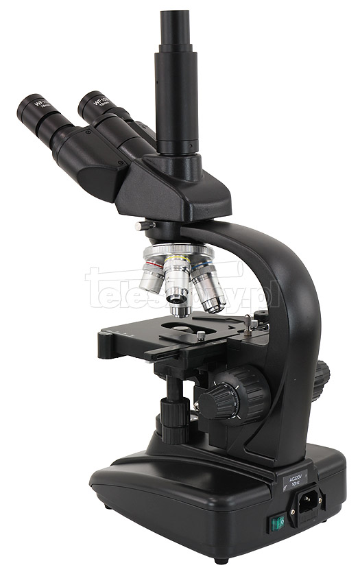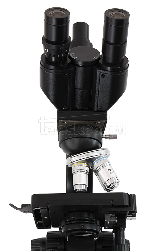 • głowica: trzyokularowa (dwuokularowa z trzecim torem optycznym dla kamery lub lustrzanki)