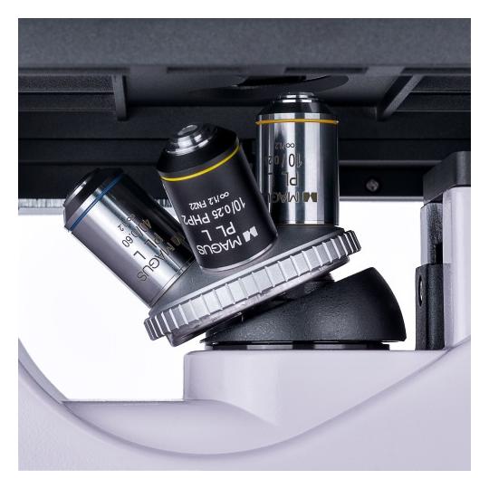 • obiektywy: PL 10x/0,25 WD 4,27 mm; PL L20x/0,40 WD 8,0 mm; PL L40x/0,60 WD 3,5 mm; PHP2 10x/0,25 fazowy WD 4,27 mm