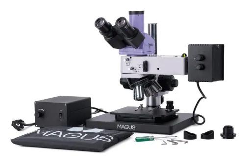 • precyzyjna regulacja ostrości z wartością skali 0,7 µm • duży stolik 280x270 mm, ruch w zakresie 204 mm w obu osiach • głowica trójokularowa z kątem nachylenia 30° i kostką światłodzielącą 100:0/0:100 • pięć obiektywów planarno-achromatycznych z korekcją do nieskończoności • źródło światła: halogenowa żarówka 30 W z regulacją jasności • oświetlenie Köhlera, możliwość centrowania elementów oświetlacza • urządzenie do polaryzacji (wbudowany analizator, wyjmowany polaryzator) • kamera cyfrowa MAGUS CBF30 o rozdzielczości 6,3 MP z interfejsem USB 3.0 • możliwość nagrywania wideo 59 kl./s i wykonywania pomiarów w oprogramowaniu MAGUS View