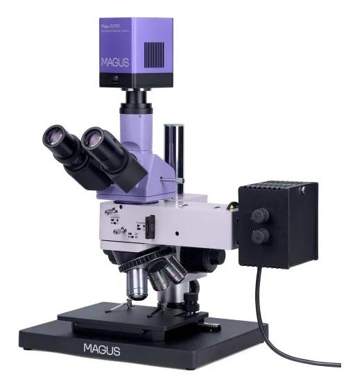 MAGUS Metal D650 BD (SKU: 83032) to mikroskop metalurgiczny przeznaczony do obserwacji dużych preparatów w świetle odbitym, takich jak fotomaski, płytki drukowane i układy scalone. Pozwala na prowadzenie badań metodą jasnego pola oraz w świetle spolaryzowanym. Dzięki precyzyjnej regulacji ostrości (skala 0,7 µm) mikroskop doskonale sprawdza się przy dużych powiększeniach, zarówno w kontroli jakości, jak i edukacji technicznej.