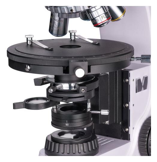 • praca w świetle przechodzącym metodą jasnego pola i polaryzacji • oświetlenie halogenowe 30 W z regulacją Köhlera i zestawem filtrów • analizator i polaryzator z możliwością obrotu o 360°, soczewka Bertranda i gniazda na kompensatory • głowica trójokularowa typu Siedentopf z kątem 30° i podziałem światła • rewolwer na pięć obiektywów, obiektywy beznaprężeniowe Strain-Free • stolik Ø150 mm, obracany 360°, skala kąta z dokładnością do 0,1° • regulacja ostrości: zgrubna z blokadą, precyzyjna 0,002 mm • kamera 21 MP z matrycą SONY Exmor, interfejs USB 3.0, do 192 kl./s
