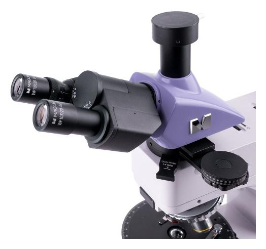 • mikroskop do badań w świetle przechodzącym i odbitym z opcją polaryzacji • głowica trójokularowa typu Siedentopf z możliwością montażu kamery • układ optyczny z korekcją do nieskończoności, obiektywy beznaprężeniowe • obiektywy: PL 5x, 10x, 40x, 60x w zestawie, opcjonalnie do 100x • oświetlenie halogenowe 30 W z konfiguracją Köhlera i zestawem filtrów • stolik obrotowy Ø150 mm z dokładnością kąta 0,1°, możliwość centrowania • soczewka Bertranda, analizator, skala kąta, gniazda na kompensatory • kamera 20 MP z matrycą SONY Exmor, tryby 5280x3954 do 584x438 • interfejs USB 3.0, oprogramowanie MAGUS View, szybki start i pomiary