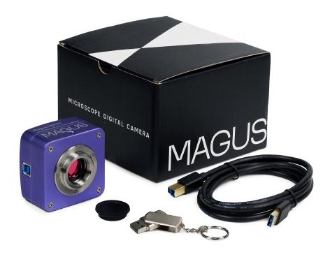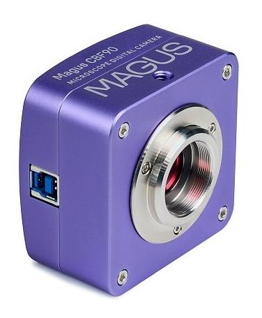 The MAGUS CBF90 digital camera (MAGUS, SKU: 83199) is a professional tool for microscopic imaging, allowing you to take pictures and record videos, edit material, take measurements and present the image in real time on an external monitor. The high sensitivity of the SONY Exmor CMOS matrix and the USB 3.0 interface ensure smooth operation even in low light conditions. • 2/3" SONY Exmor CMOS color sensor • two operating modes: 2448×2048 px at 35 fps and 1224×1024 px at 50 fps • Light sensitivity 1146 mV at 1/30 s • USB 3.0 interface with a throughput of 5 Gb/s • ability to perform linear and angular measurements (after calibration) • built-in infrared filter (spectral range 380–650 nm) • compatibility with C-type adapters and rings for various tube diameters • recording movies and saving images in *.jpg, *.bmp, *.png, *.tif, *.wmv, *.avi, *.h264, *.h265 formats • MAGUS CBF90 digital camera • USB cable • installation CD with drivers and software • user manual and warranty card • Product ID: 83199 • brand: MAGUS • warranty: 5 years • EAN: 5905555019215 • package size (L × W × D): 15×15×10 cm • shipment weight: 0.6 kg • sensor: SONY Exmor CMOS • type: colorful • resolution: 2448×2048 px • megapixels: 5 • matrix size: 2/3" (8.45×7.07 mm) • pixel size: 3.45×3.45 µm • Light sensitivity: 1146 mV at 1/30 s • Signal to noise ratio: 0.15 mV at 1/30 s • exposure time: 0.1 ms – 15 s • frames per second: 35 (2448×2048), 50 (1224×1024) • mounting location: trinocular head tube, eyepiece tube • image formats: *.jpg, *.bmp, *.png, *.tif • video formats: *.wmv, *.avi, *.h264, *.h265 • shutter type: ERS (electronic) • white balance: manual, automatic • exposure time: manual, automatic • programmable parameters: image size, brightness, exposure time • output: USB 3.0 • software: MAGUS View • mounting type: type C • body: durable aluminum • power supply: 5 V from USB port • operating temperature range: –10...+50°C • operating humidity range: 30–80% The CBF90 is designed for demanding microscopy tasks, combining high image quality with the functionality necessary for research and teaching.