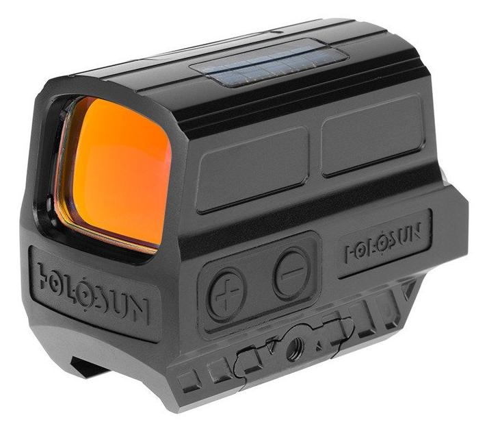 The Holosun Enclosed Reflex HS512C Multi Reticle, Solar Panel Sight (SKU: HS512C / 19587) is a closed reflex sight with three reticle options, a solar cell, and automatic or manual operation. Thanks to its efficient LED and optimized control circuitry, it offers a theoretical operating time of up to 50,000 hours on a single battery at medium brightness settings. The optical glass lenses are multi-coated with reflective coatings, ensuring high light transmission and a bright, clear image. The Multi Reticle System allows you to choose between three reticle markings: a 2 MOA dot, a 65 MOA circle, or a combination of both, without losing zeroing. The Solar Failsafe system automatically adjusts the aiming dot brightness to suit lighting conditions and saves energy. Manual mode can also be selected, giving the user access to 10 daytime modes and two night vision modes. The Shake Awake system puts the sight into sleep mode after a specified period of inactivity and automatically wakes it up with minimal weapon movement. The housing is made of T6061-T6 aluminum, milled from a block and coated with an MAO anodized coating. This ensures low weight while maintaining high damage resistance. The Picatinny/Weaver mount features a QD buckle, allowing for quick removal and reassembly without losing zero. • wide field of view • LED technology with low power consumption • automatic and manual mode • solar cell supporting power supply • double power source: solar cell + battery • three aiming marks: dot, circle, dot with circle • brightness adjustment: manual or automatic • multi-layer coatings on lenses • no parallax phenomenon • unlimited distance from the eye • Shake Awake motion sensor • memory of the last used setting • low battery indicator • battery mounted on a sliding tray • resistant T6061-T6 aluminum housing • waterproof according to IP67 • mounting on Picatinny or Weaver rails