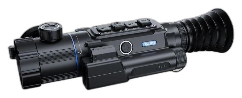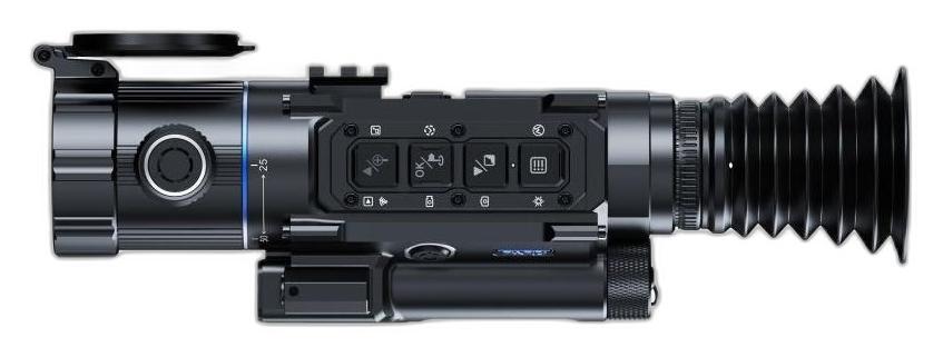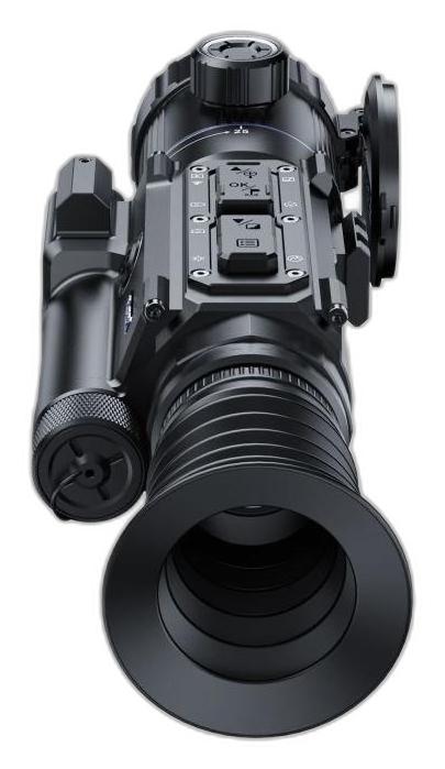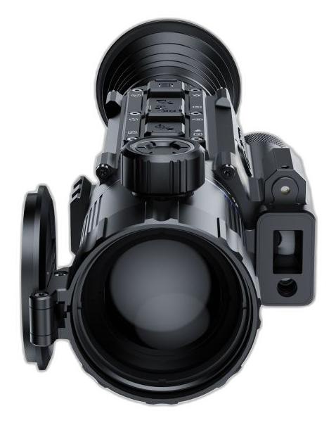 The PARD Ocelot Zoom 640 LRF is a compact and lightweight thermal imaging scope offering high image quality and a range of advanced features, making it an attractive proposition for both experienced hunters and those just starting their adventure with thermal imaging. • double lens with diameters of 25 mm and 50 mm • optical magnification: 1.3–2.5× • digital zoom: up to 8× • VOx sensor resolution: 640×512 px • pixel pitch: 12 μm • thermal sensitivity (NETD): <20 mK • manual lens focusing • minimum focusing distance: 5 m • distance from the eye: 100 mm • image processing technology: PARD VLEA • detection range: 1200–2600 m (object 1.7 m high) • IPS LCD display (round) with a resolution of 800×800 px • refresh rate: 50 Hz • color modes: red, black, white, iron, sky, edge • laser rangefinder with a measuring range of up to 1000 m • ballistic calculator • field of view at 100 m: 12.23–24.55 m • replaceable 21700 battery, operating time up to 5 hours • MicroSD card support up to 128 GB • tightness class: IP67 • dioptric correction: -5D to +3D • mobile application support (PardVision2) • energy saving mode • PiP function (picture in picture) • Recording a 20-second video upon shot (8 seconds before and 12 seconds after) • video: 768×768 px • JPG photos: 1536×1536 px • recoil resistance: up to 6000 J • built-in gyroscope and compass • weight: 709 g • operating temperature range: -30°C to +55°C • charging via USB-C