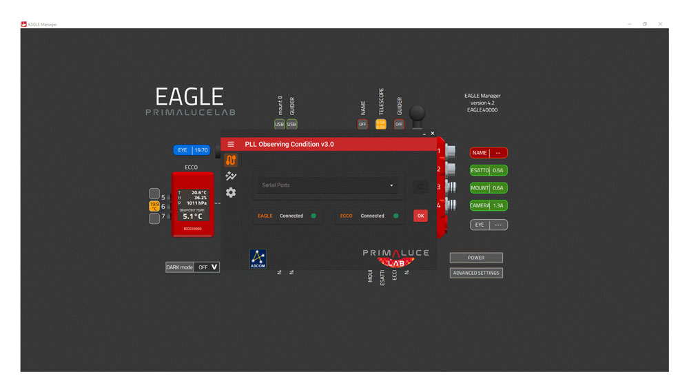 ECCO2 – environmental computerized controller for EAGLE (PrimaLuceLab, SKU: ECCO2 ) is an intelligent controller that automatically manages the operation of heaters that prevent fogging at night. The device monitors the temperature, humidity and pressure around the telescope and the temperature of the lenses, calculating the dew point and modulating the power supply to the heaters through the EAGLE DC ports accordingly. The installation is done via the USB-C port without the need for additional software. • automatic control of heaters based on analysis of dew point, temperature, humidity and pressure • support for up to 3 external temperature sensors and built-in humidity and pressure sensors • USB-C port with double-sided plug – easy connection in the dark • "DARK" mode – possibility to turn off the diode backlight • compatible with EAGLE2–5 platforms and Windows computers via ASCOM driver • optional attachment to the Vixen rail or using additional brackets • ECCO2 module • Vixen rail mount • 2 temperature sensors • USB-C cable (approx. 120 cm) • quick start guide • Compatibility: all EAGLE versions from 2 upwards, Windows system (ASCOM) • power supply: from the EAGLE device's USB-C port • mounting: Vixen rail or using optional brackets • housing: red anodized aluminum • weight: 75 g • EAN: 8059020773762 The ECCO2 module automates the protection of optics against fogging and integrates with the EAGLE controller or a Windows computer, making it the ideal solution for modern astrophotography.