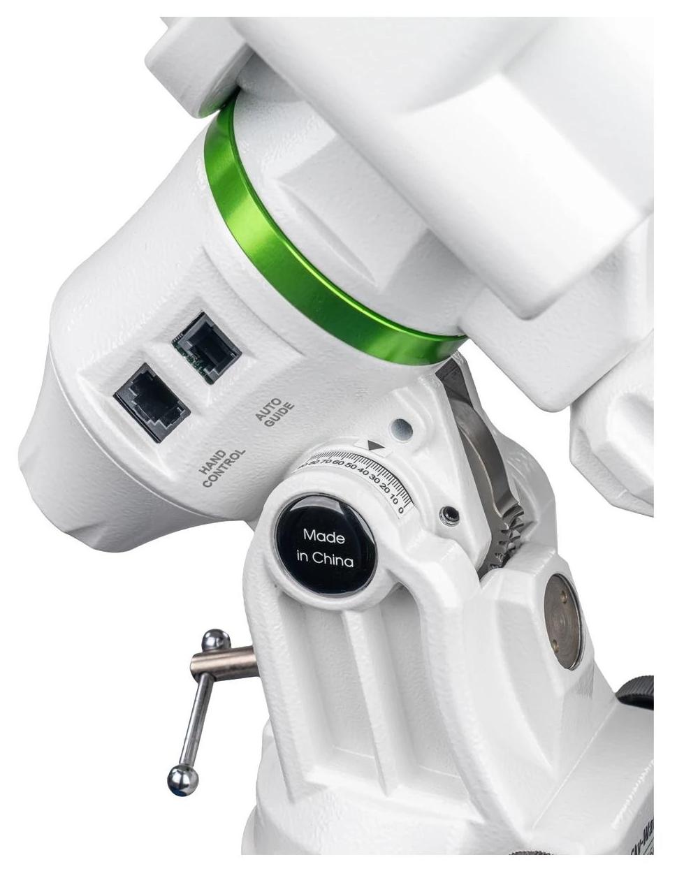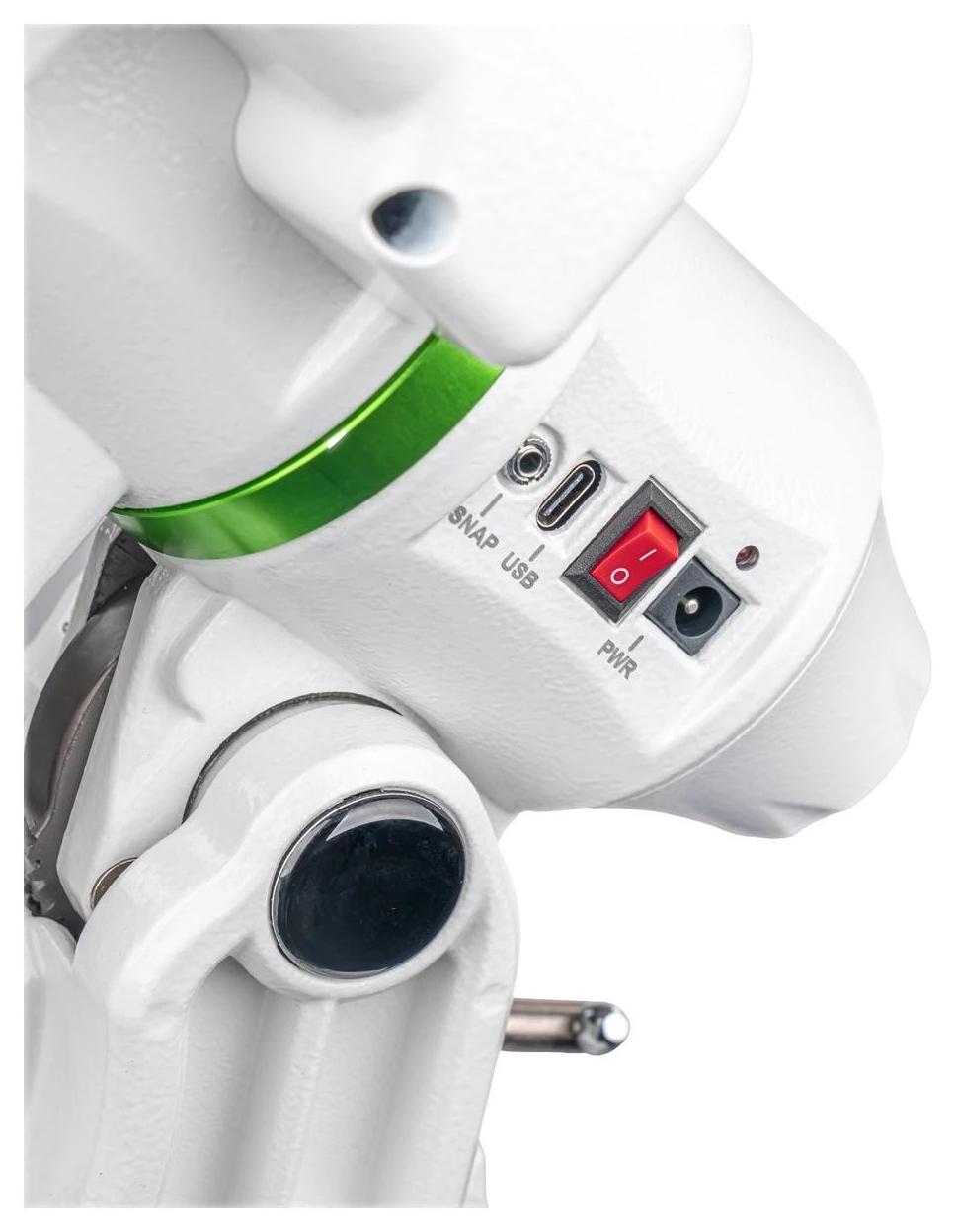 Posiada także złącza dla USB-C, autoguidera oraz opcjonalnie dostępnego pilota SynScan. Znajduje się tu również gniazdo do wyzwalania aparatu DSLR.