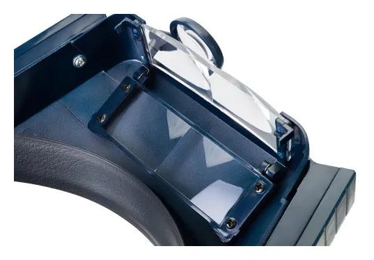 Lupa wyposażona została w system oświetlenia LED. Diody zasilane są bateriami AAA (baterie nie wchodzą w skład zestawu).