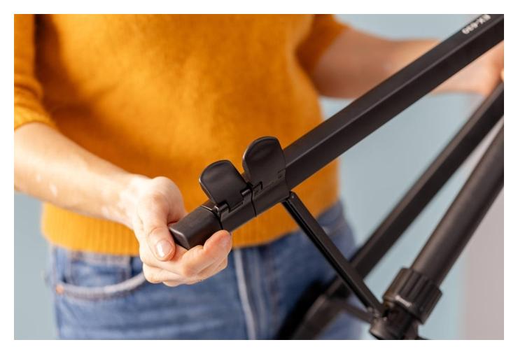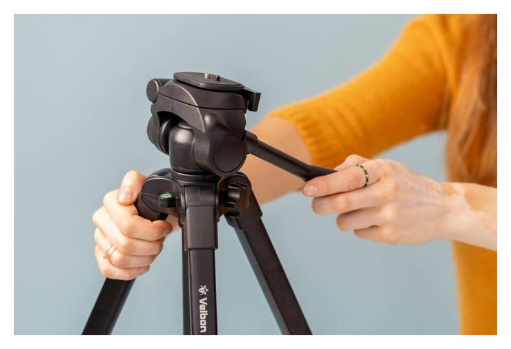 Trójsekcyjne nogi statywu Velbon EX-530 wykonane z lekkiego i wytrzymałego stopu aluminium umożliwiają uzyskanie pełnej stabilności przy maksymalnej wysokości roboczej wynoszącej 156 cm.