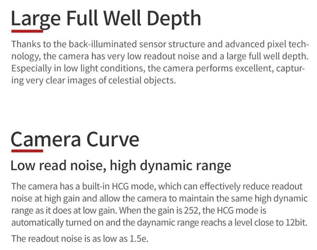 Sercem tej kamery jest monochromatyczna matryca Sony IMX585, wykorzystująca technologię Sony Starvis 2™, dzięki czemu charakteryzuje się ona niezwykle wysoką czułością zarówno w zakresie widzialnym, jak i w bliskiej podczerwieni. Sensor ten odznacza się także zaniedbywalnie niskim poziomem szumu odczytowego, a także brakiem występowania efektu amp glow. W połączeniu z zaawansowanym 12-bitowym przetwornikiem analogowo-cyfrowym gwarantuje to uzyskanie zapierających dech rezultatów w niemal każdych warunkach.