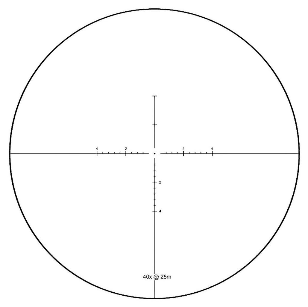 Siatka celownicza COM-25M, wykonana metodą wytrawiania w szkle, znajduje się w drugiej płaszczyźnie ogniskowej (SFP), co zapewnia jej stałe rozmiary i eliminuje ryzyko przesunięcia pod wpływem odrzutu. Paralaksa regulowana jest bocznym pokrętłem w zakresie od 10 jardów do nieskończoności, co pozwala na eliminację błędów celowania przy różnych odległościach.