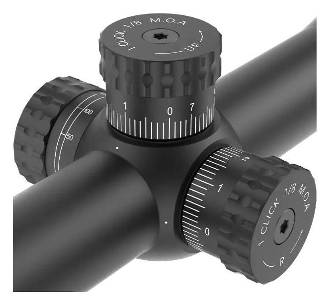 • regulacja z dokładnością 1/8 MOA i zakresem +/-50 MOA