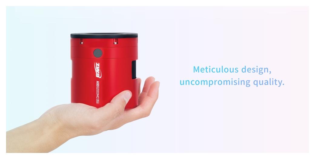 Monochromatyczna kamera ZWO ASI 6200MM-P25 (ZWO, SKU: ASI6200MM-P25) to pełnoklatkowa kamera CMOS najnowszej generacji, przeznaczona do zaawansowanej astrofotografii. W porównaniu do poprzedniej wersji modelu, oferuje obniżony poziom szumu odczytowego oraz wyższe klatkaże. Nowe matowe wykończenie obudowy nadaje kamerze profesjonalny, nowoczesny wygląd. Sercem kamery pozostaje sprawdzony, pełnoklatkowy sensor Sony IMX455 o rozdzielczości 62 MPix, współpracujący z 16-bitowym przetwornikiem ADC. Wydajny, dwustopniowy układ chłodzenia Peltiera oraz brak efektu Amp Glow pozwalają na bezkompromisową pracę przy długich ekspozycjach.