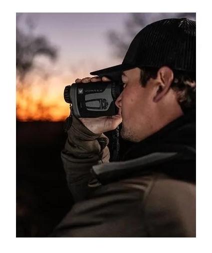Monokular termowizyjny Vortex Veil 400 (SKU: TML-VEIL425) to kompaktowe urządzenie obserwacyjne przeznaczone do pracy po zmroku i w nocy. Model ten łączy detektor termiczny 400 x 300 o rozmiarze piksela 12µm, obiektyw 25 mm, powiększenie bazowe 2,3x oraz wyświetlacz OLED 1024 x 768, zapewniając czytelny obraz i wygodną obsługę w terenie. Dzięki czterem paletom kolorystycznym, trzem trybom obrazu oraz funkcji zapisu zdjęć i wideo Vortex Veil 400 sprawdza się podczas nocnych obserwacji, poruszania się w terenie i zastosowań łowieckich.
