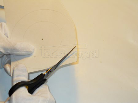 (wycinanie nożyczkami należy wykonywać po spirali, by stopniowo dojść krawędzią tnącą nożyczek do obrysu wewnętrznego)