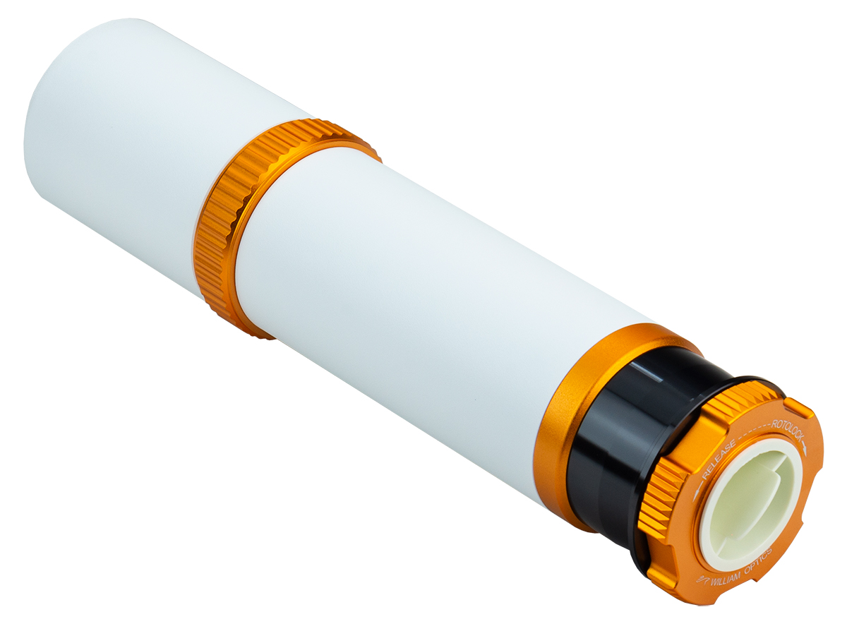 Luneta do guidingu William Optics 50 mm Guiding Scope (bia³o-z³ota, SKU: M-G50WGIII) to wysokiej jako¶ci prowadz±ca lunetka optyczna f/4 z obiektywem achromatycznym. Wyposa¿ona jest w precyzyjny mikrofocuser helikalny typu RotoLock z gniazdem 1,25", który zapewnia pewne i stabilne mocowanie kamer guidingowych. Konstrukcja zosta³a zoptymalizowana pod k±tem wspó³pracy z popularnymi kamerami autoguiderów (ZWO, QHY, SBIG i inne) w standardzie 1,25".